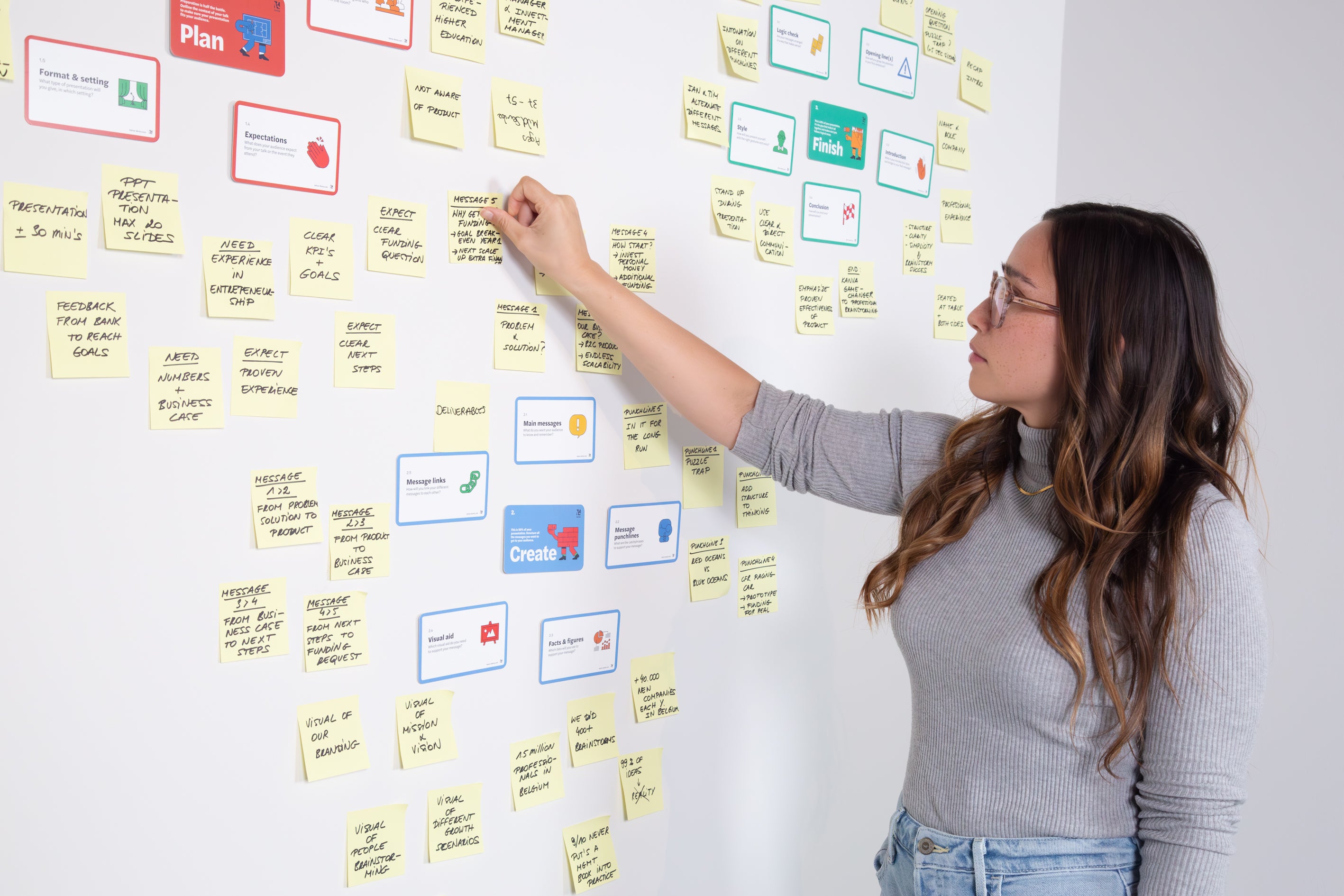 Instantly start doing the groundwork. The cards will spark ideas that you can note down and arrange next to the relevant card. Adapt, change & re-arrange as much as you like.